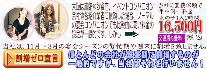 大阪でコンパニオンを居酒屋宴会等の席に呼びたいなら、長年続いており、地元企業様からの依頼も多い当社にお任せ下さい。最近では20代の若くて綺麗な女の子がどんどん増えており勢いのある飲み会向け女子手配会社です。.